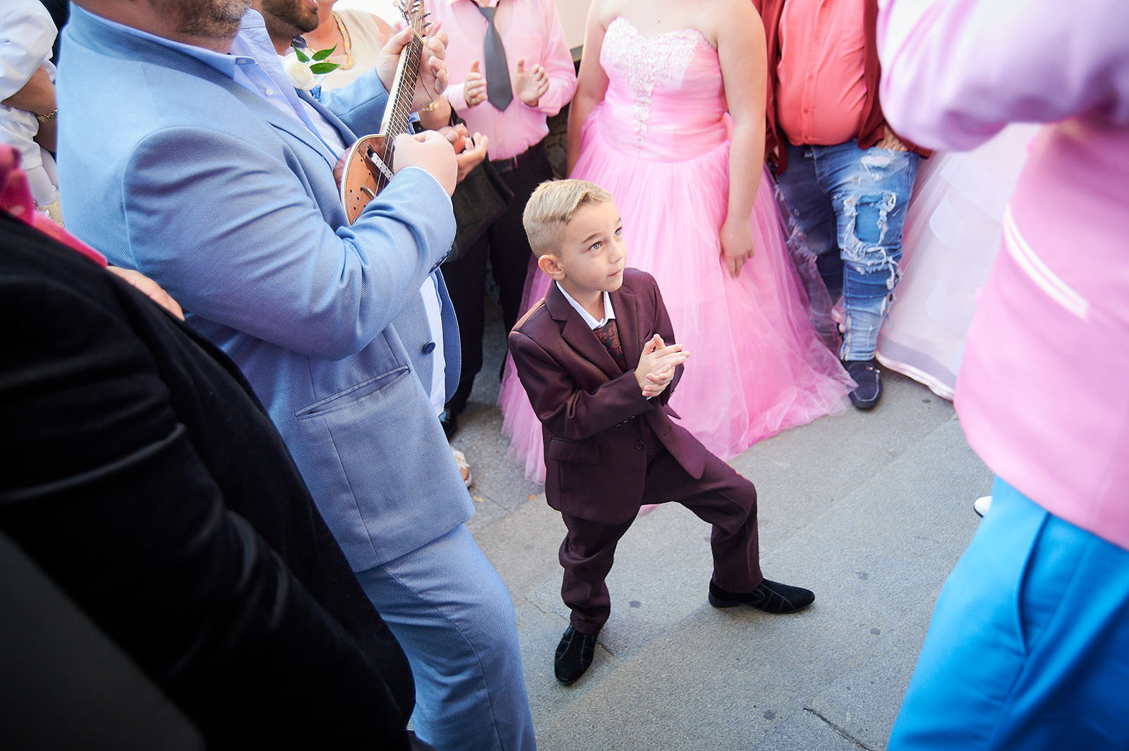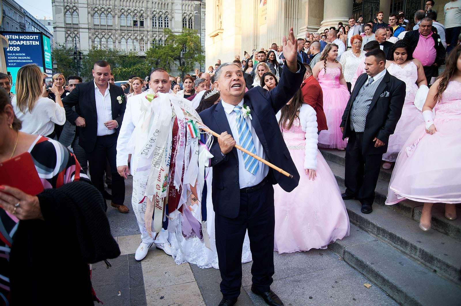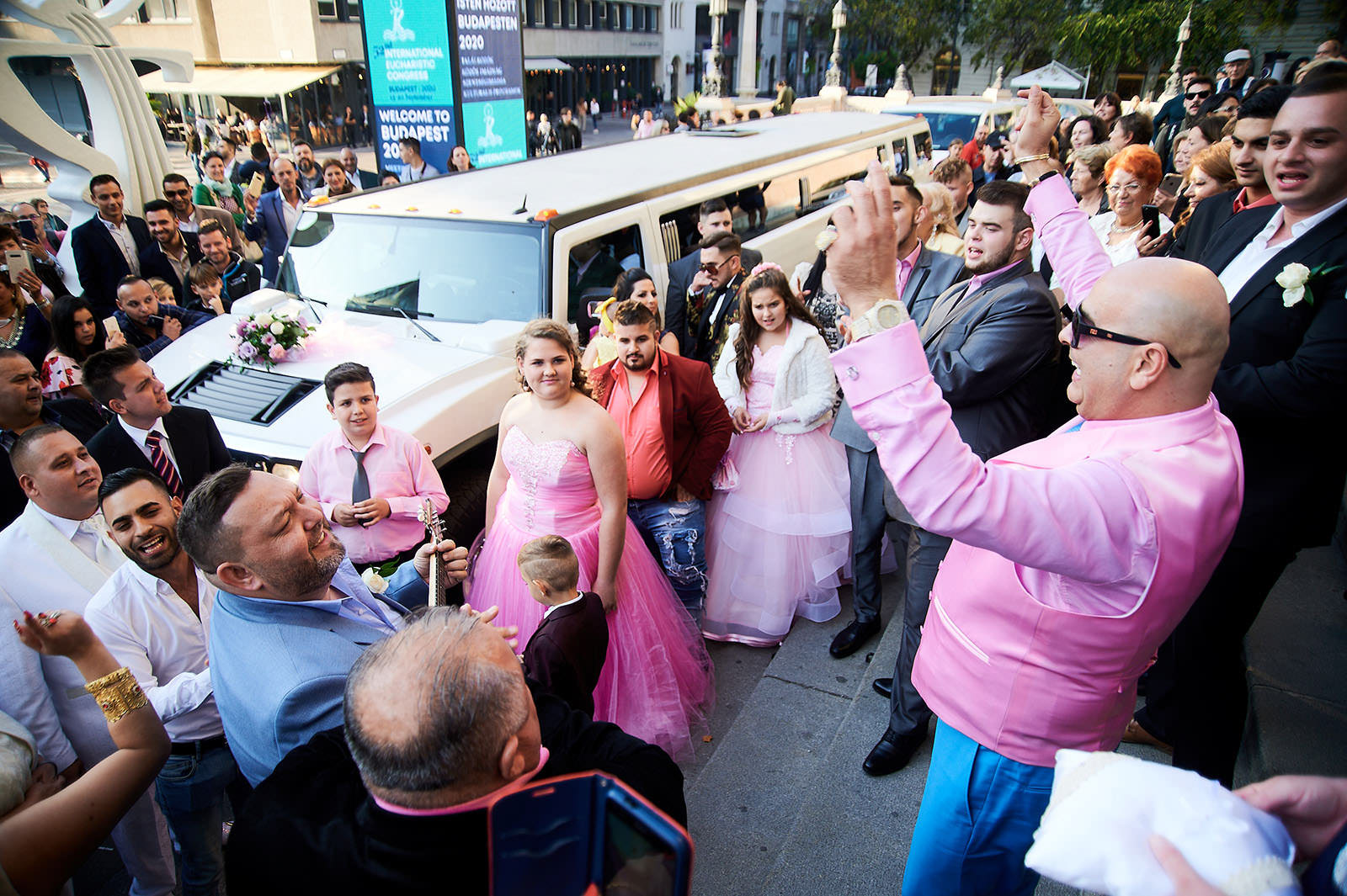 Spontaneous Roma wedding party in front of the St. Stephen Basilica in Budapest.